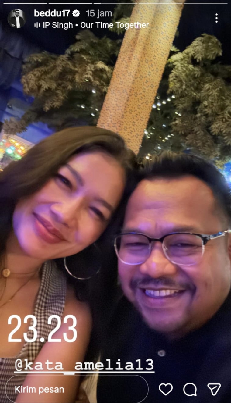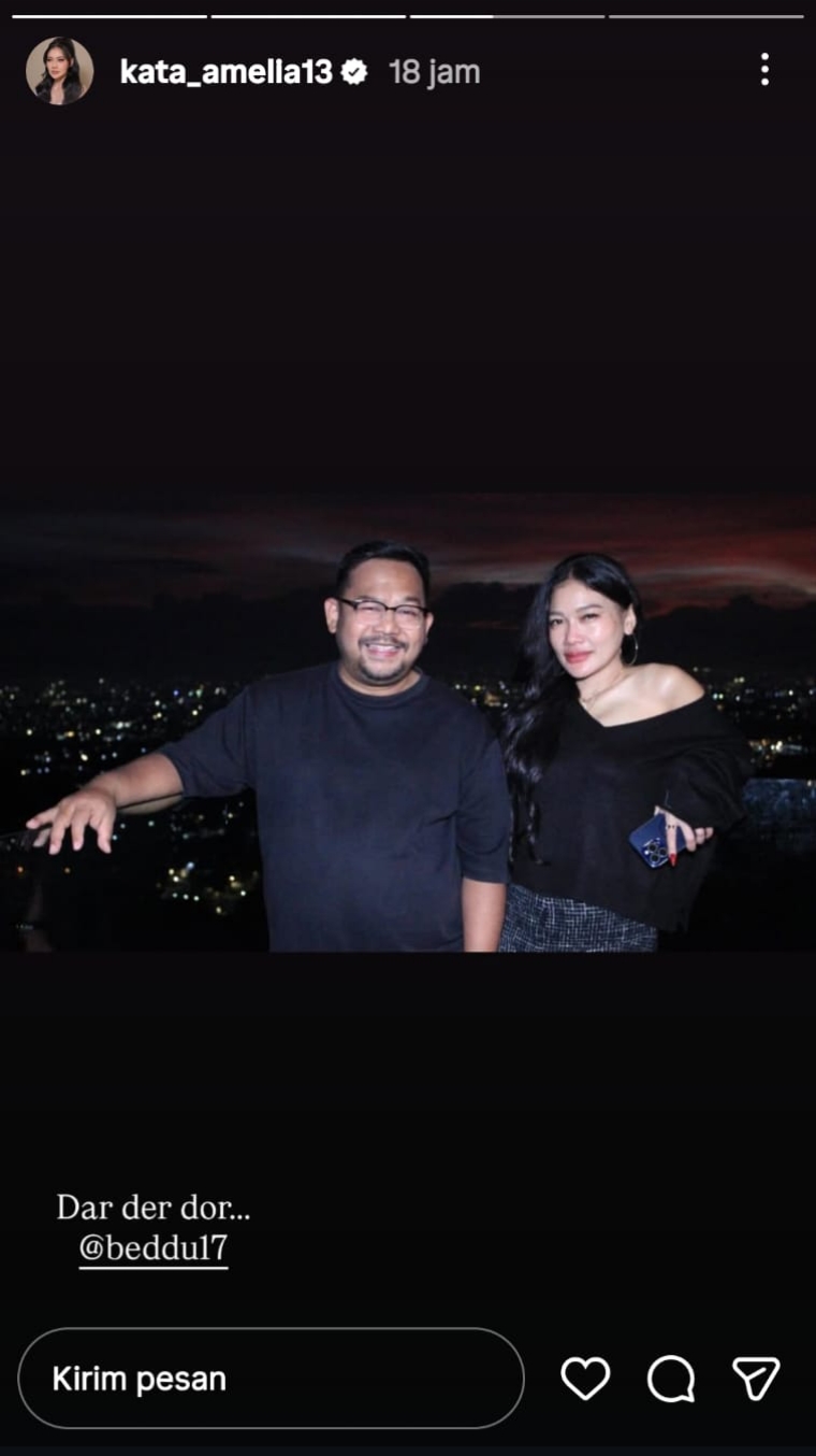 So sweet-nya lagi, sang wanita juga mengunggah foto dengan berdua dengan Bedu di akun Instagram-nya melalui story. Kata Amelia mengunggah foto bernuansa view Citylight dan pegunungan.